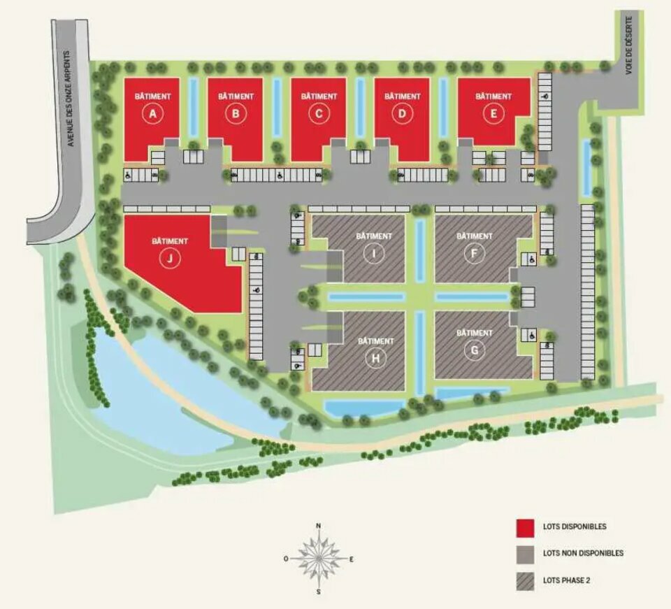 Chaque bâtiment dispose d'une porte sectionnelle de 4,50m (H) sur 4m (L), de 8m de hauteur sous poutre, une résistance au sol de 3T/m² au RDC et 350kg/m² en mezzanine.