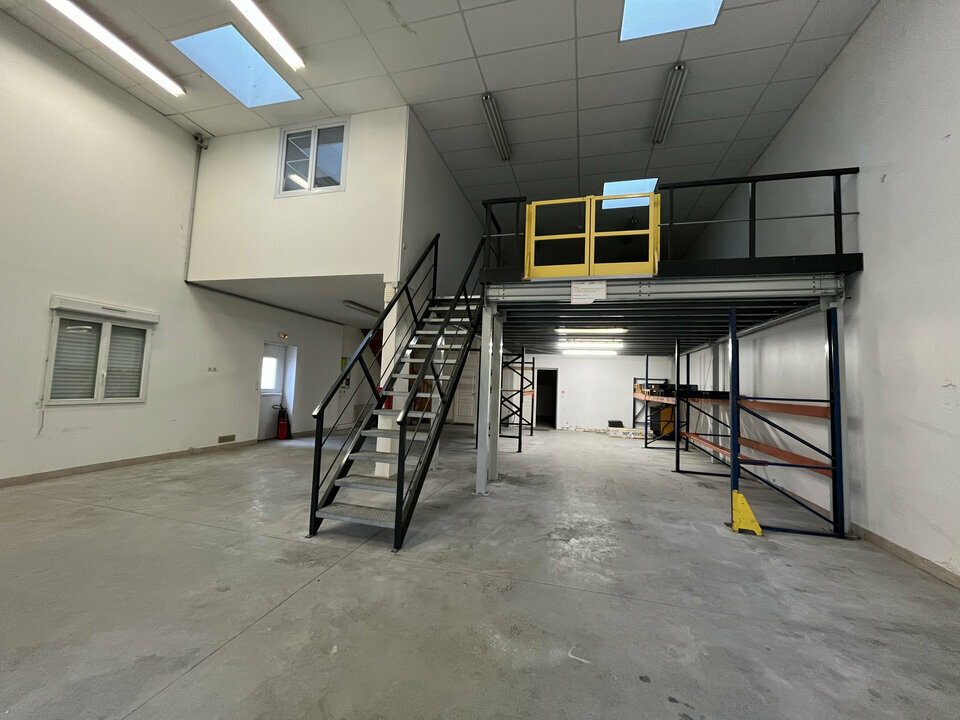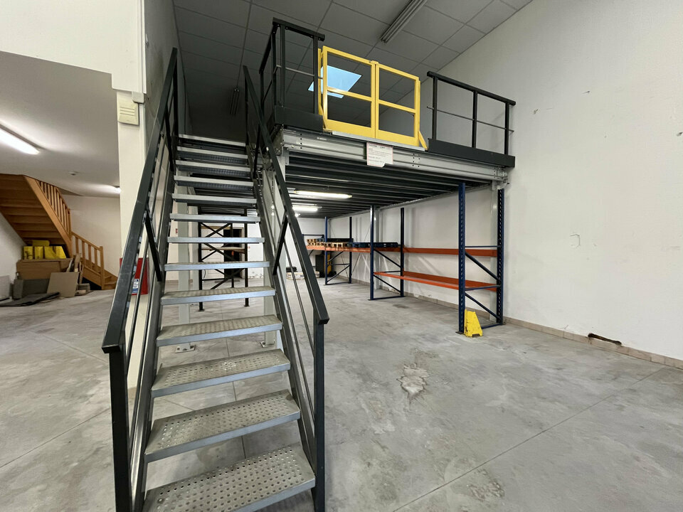 Le lot comprend également 40 m² de bureaux en R+1, offrant un espace de travail confortable et distinct de la zone d'exploitation. Une mezzanine démontable de 50 m² vient compléter l'ensemble (surface non comprise dans le métrage et le loyer affichés), apportant un espace de stockage supplémentaire appréciable.
