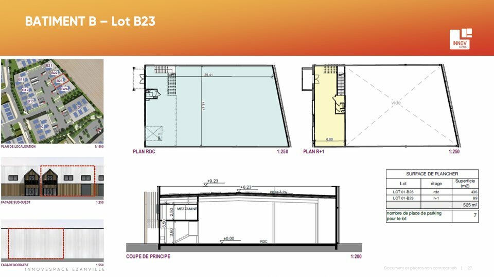 locaux d'activité de 470, 525 et 747 m² (avec quai) accès de plain-pied, situés en façade de la RD301, à 5 min de la Francilienne (N104).