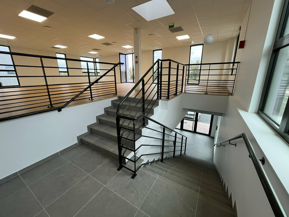 A l'intérieur, les locaux disposent de 8 mètre de hauteur sous-poutre, une charge au sol de 3T/m2 et 350kg/m2 en mezzanine.