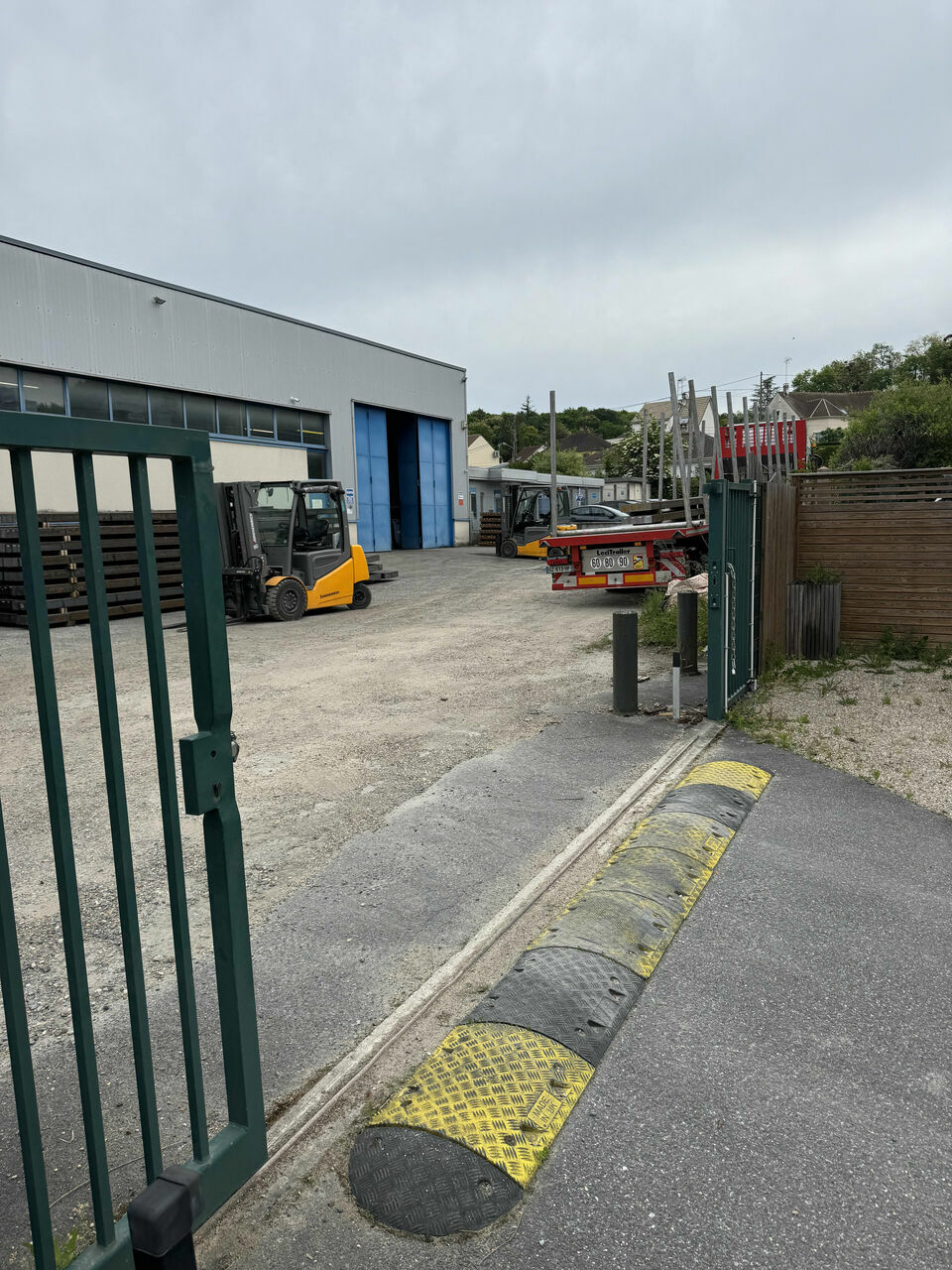 Comprenant 2 hangar demi lune (150 et 120 m²) , un chalet avec des bureaux des espaces verts et des fontaines et bassins.
