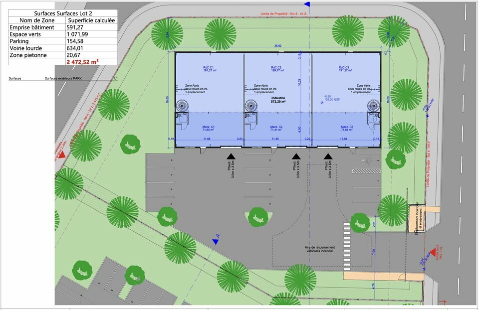 Chaque lot dispose d'une grande Porte sectionnelle, d'un accès poids lourds et de places de stationnement privatives.